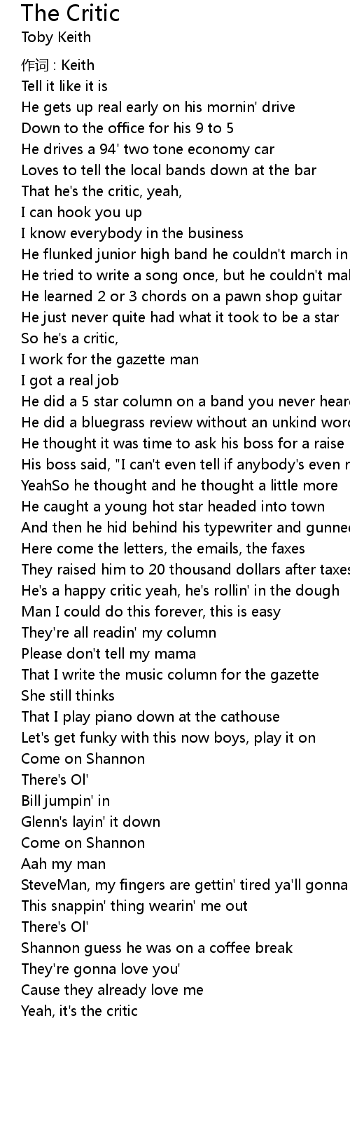 | 歌曲 | The Critic |