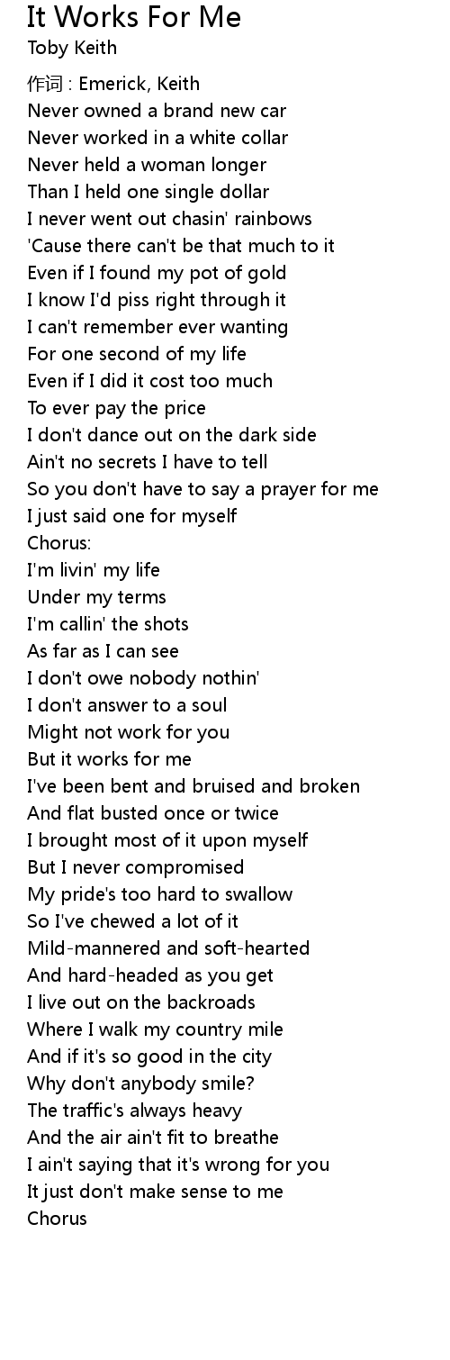 | 歌曲 | It Works For Me |