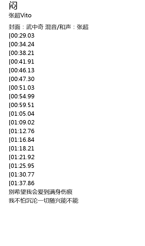 | [00:00.00] | 封面:武中奇 混音/和声:张超 |