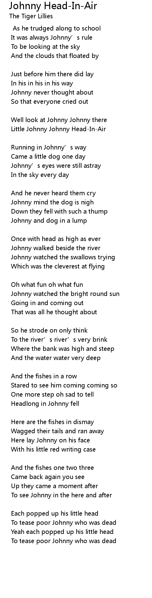 | 歌曲 | Johnny Head-In-Air |