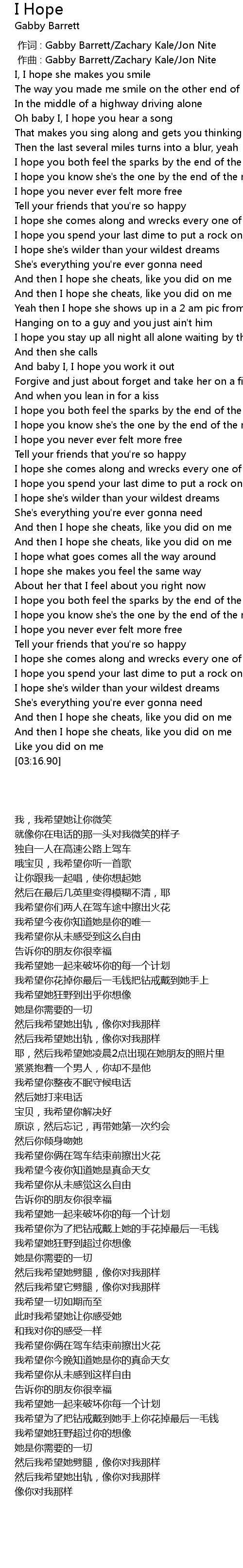 | [00:00.00] | zuò cí : Gabby Barrett Zachary Kale Jon Nite |