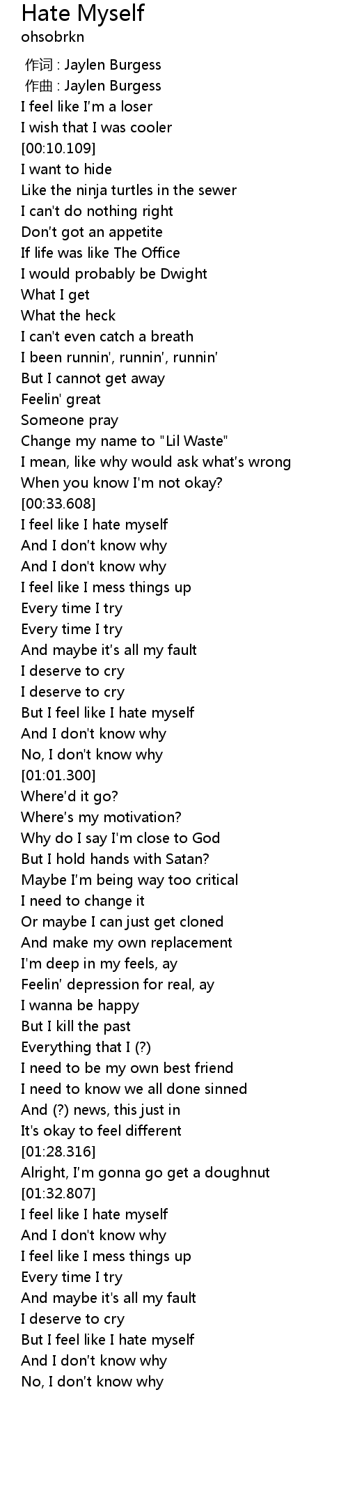 | [01:33.308] | I feel like I hate myself |
