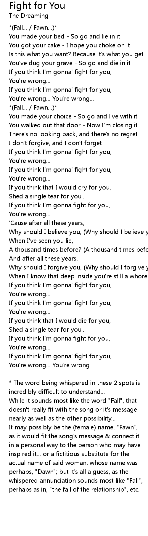 If you think I'm gonna' fight for you, |