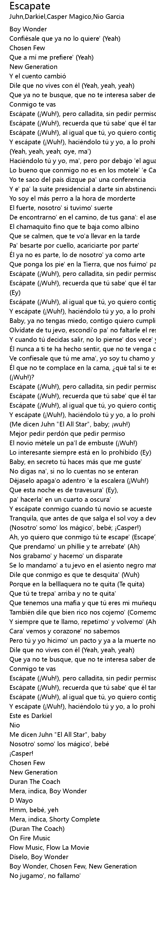 | [02:48.78] | Ah, yo quiero que conmigo tú te escape' (Escape') |