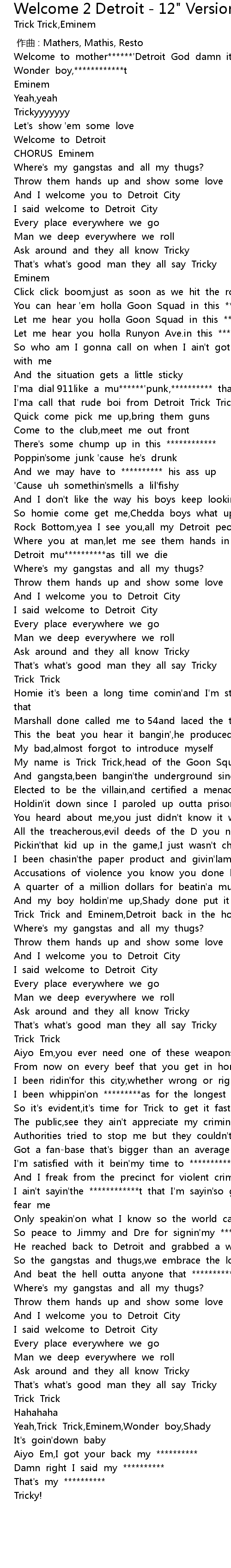 | [03:51.171] | Yeah,Trick Trick,Eminem,Wonder boy,Shady |