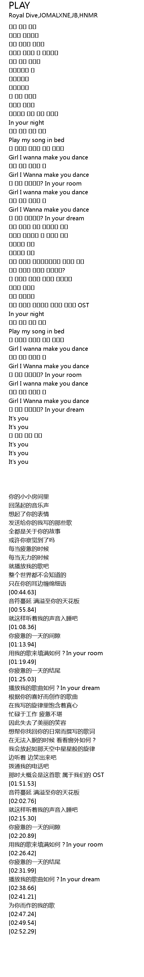| [02:34.59] | 내 노랠 틀어줄래? In your dream |