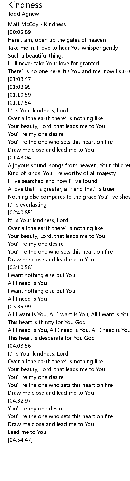 | [04:12.06] | Your beauty, Lord, that leads me to You |