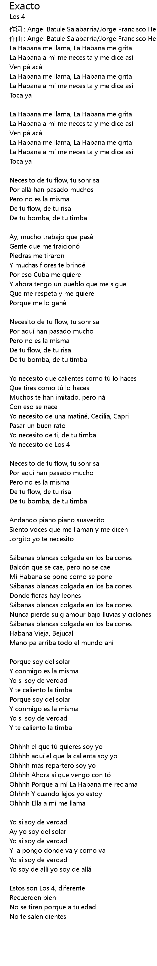 | 作词 : Angel Batule Salabarria/Jorge Francisco Hernadez Carvajal | |