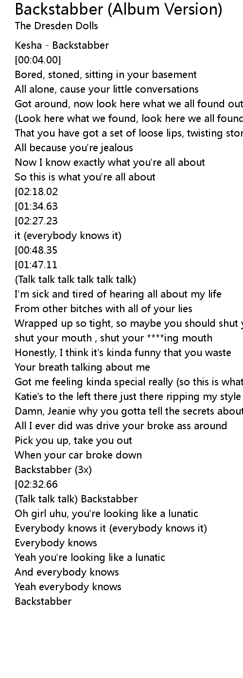 [00:01.00] Kesha - Backstabber