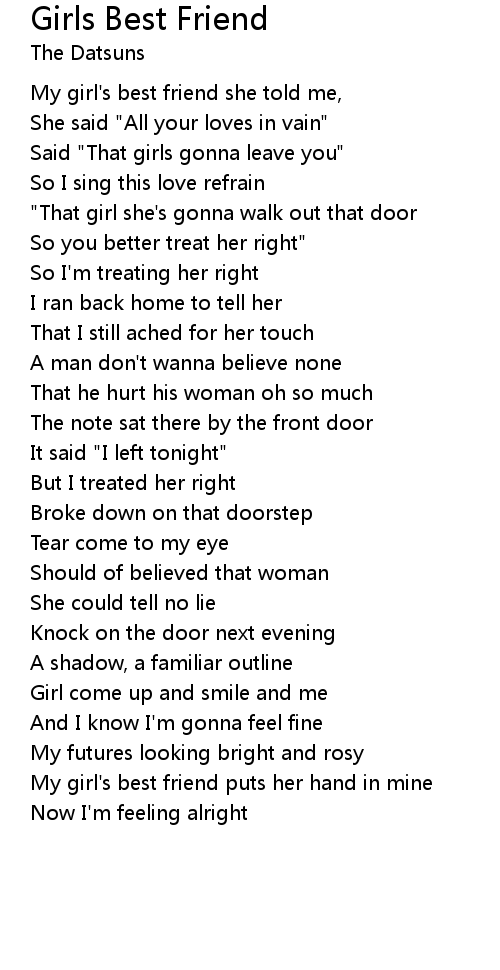 My girl's best friend she told me, |