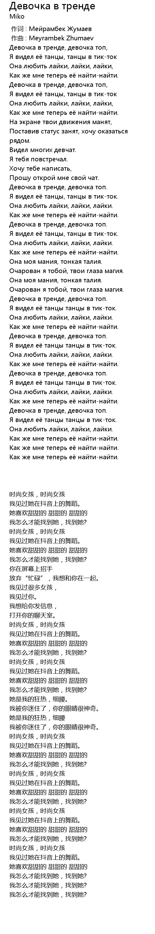 | [00:10.80] | Я видел её танцы, танцы в тик-ток |