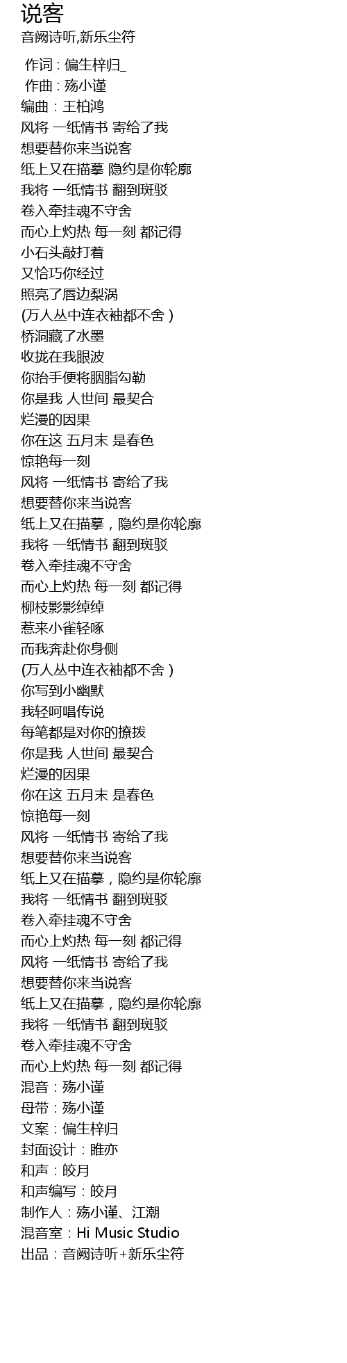 | [03:47.958] | 制作人:殇小谨、江潮 |