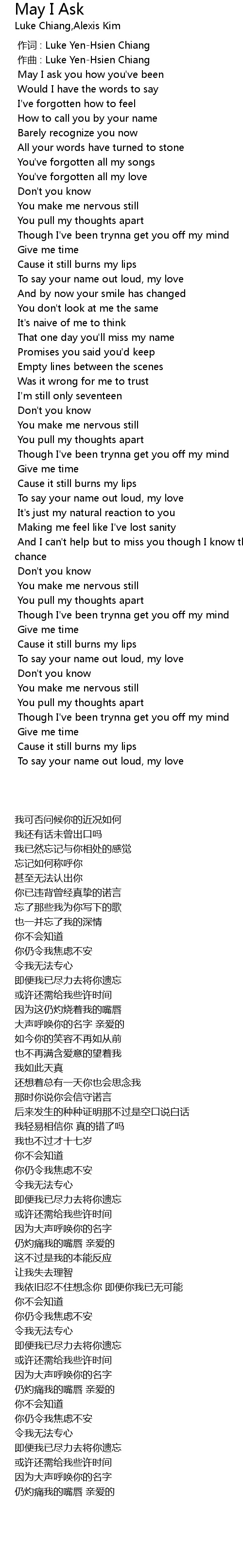 | [00:00.000] | 作词 : Luke Yen-Hsien Chiang |