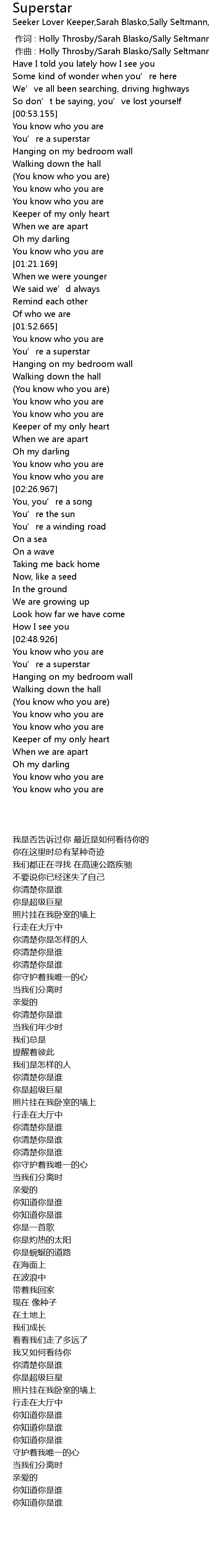 | [02:51.074] | 你是超级巨星 |