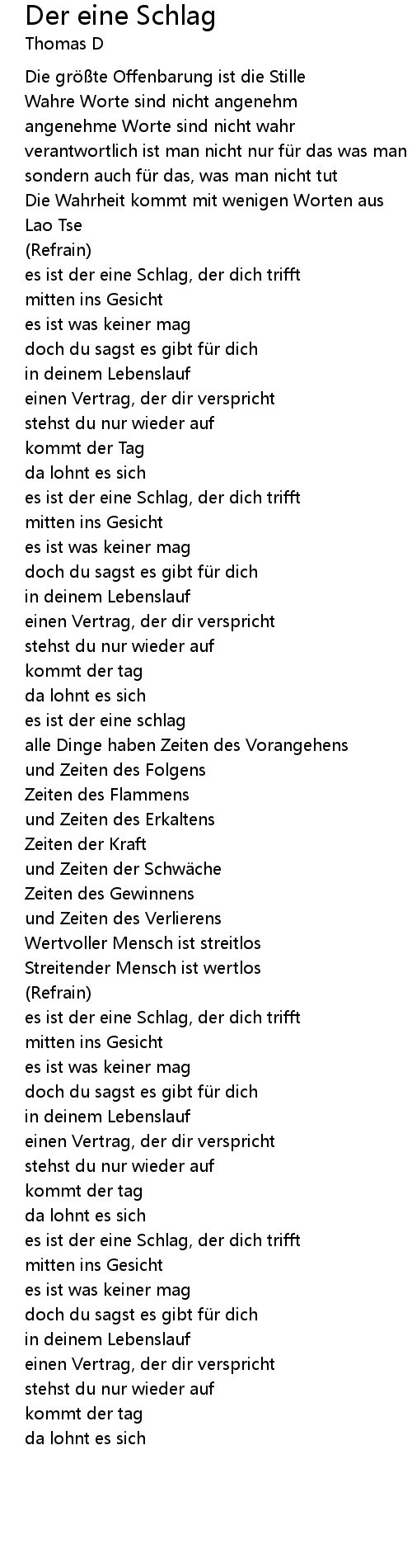 | 歌曲 | Der eine Schlag |