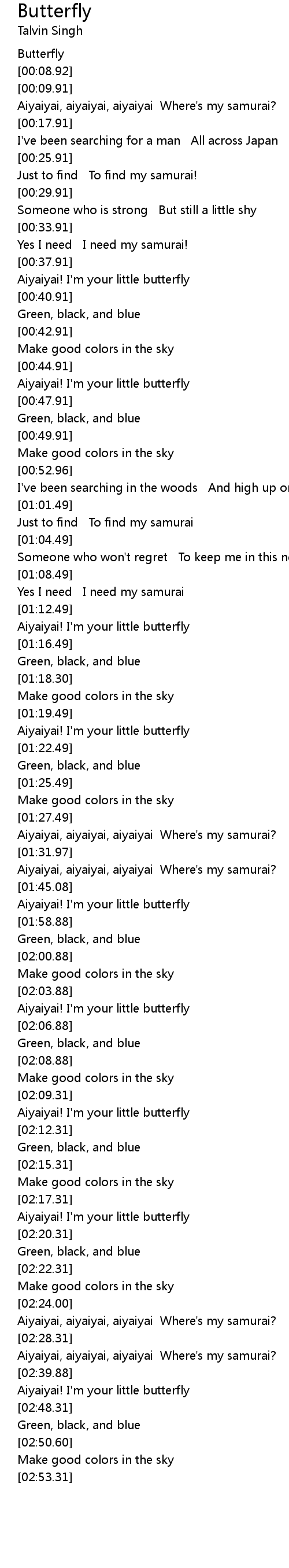 Aiyaiyai, aiyaiyai, aiyaiyai Where's my samurai? |