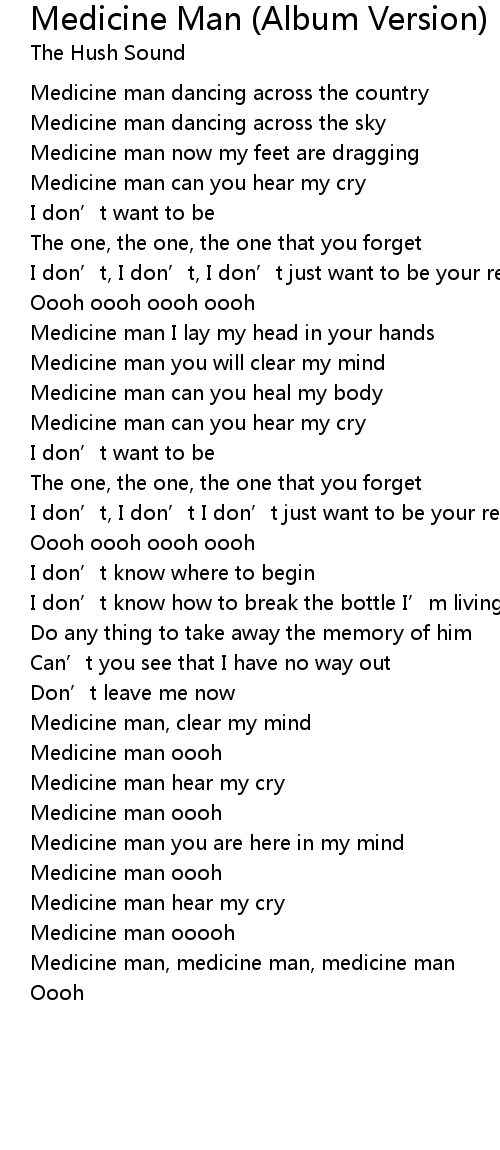 | [03:06.490] | Medicine man, medicine man, medicine man |