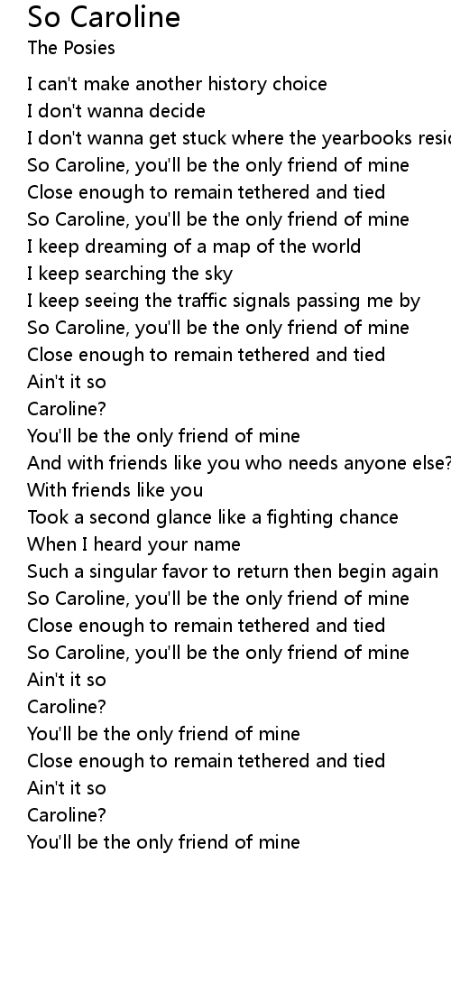 So Caroline, you'll be the only friend of mine |