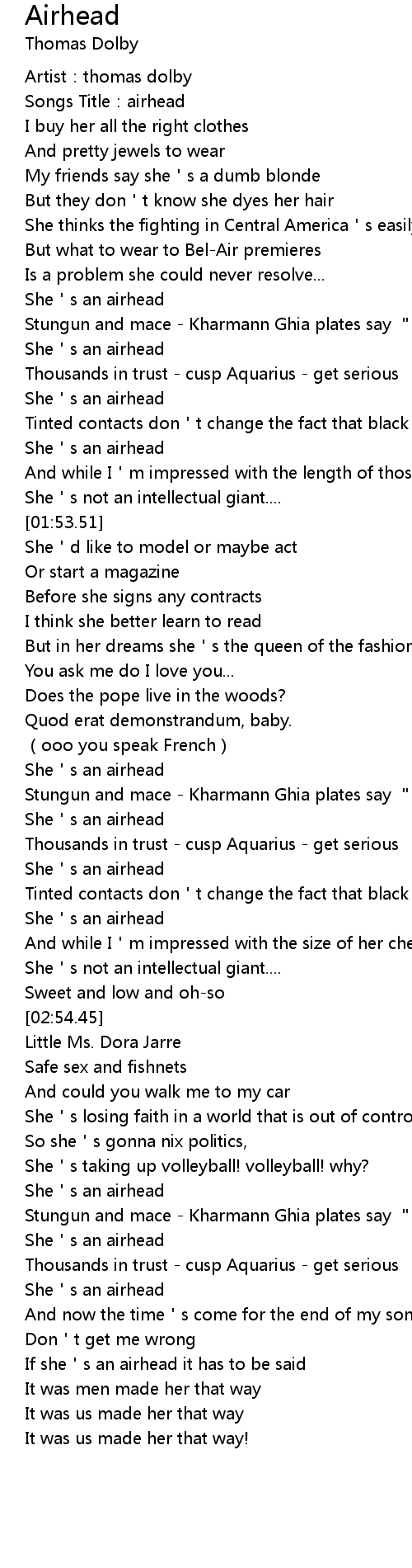 | [02:22.75] | She s an airhead |