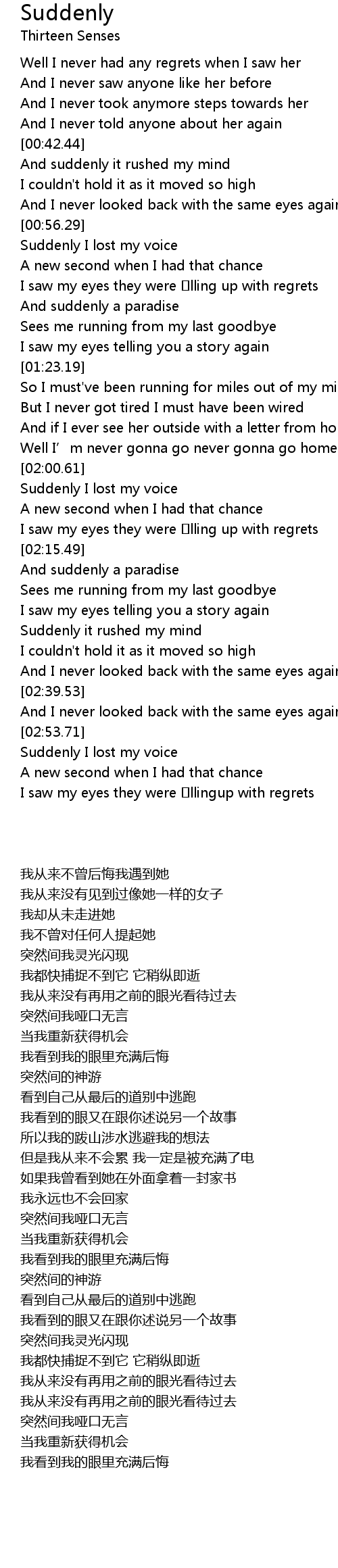 | [03:01.72] | I saw my eyes they were llingup with regrets |