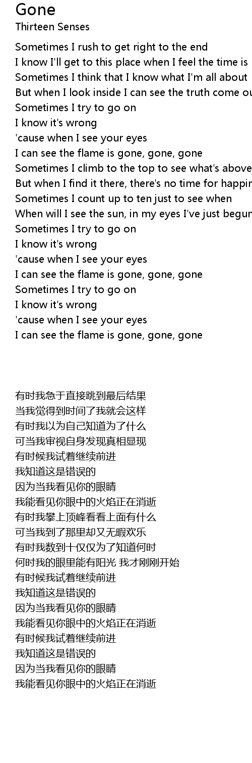 I can see the flame is gone, gone, gone |