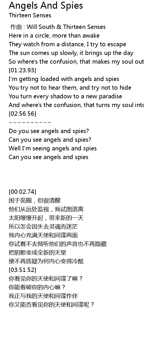 | [03:59.82] | 你看见你的天使和间谍了嘛? |