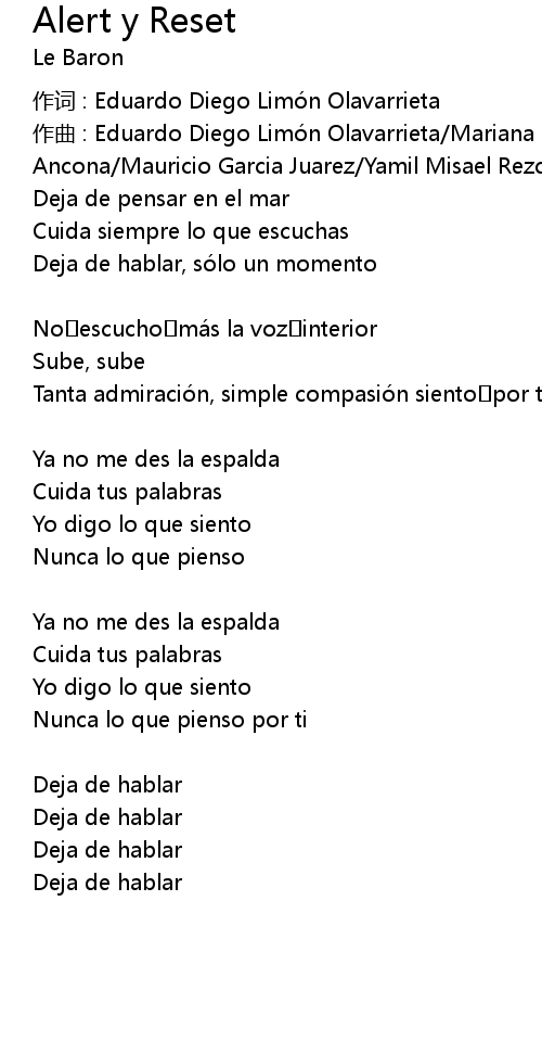 | 作词 : Eduardo Diego Limón Olavarrieta | |