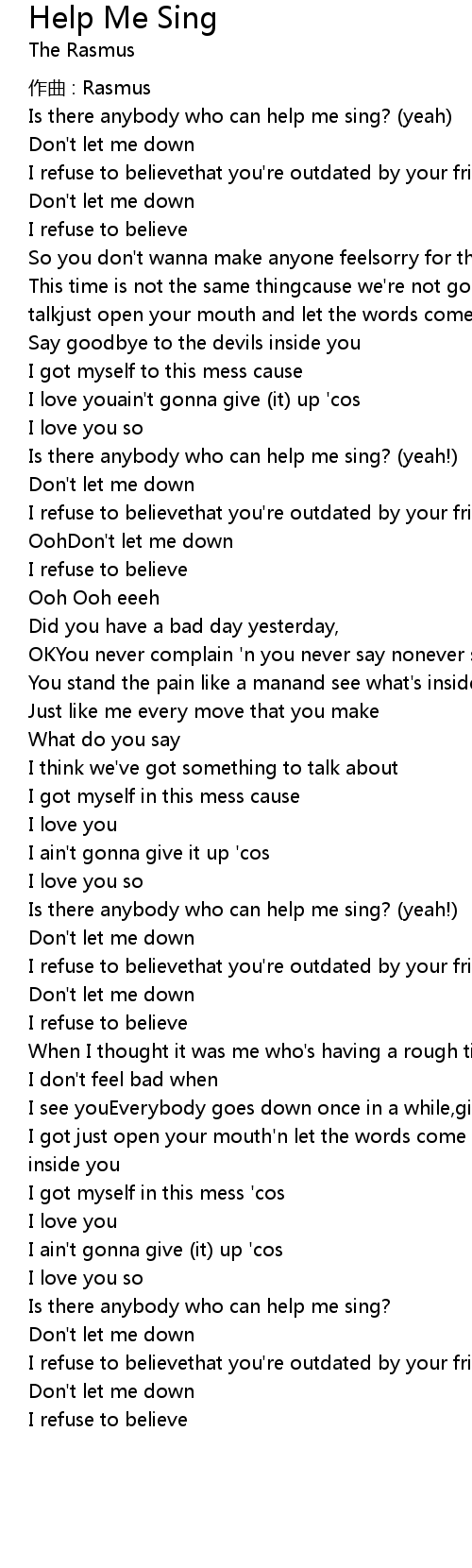 | This time is not the same thingcause we' re not gonna leave the room before you talkjust open your mouth and let the words come out | |