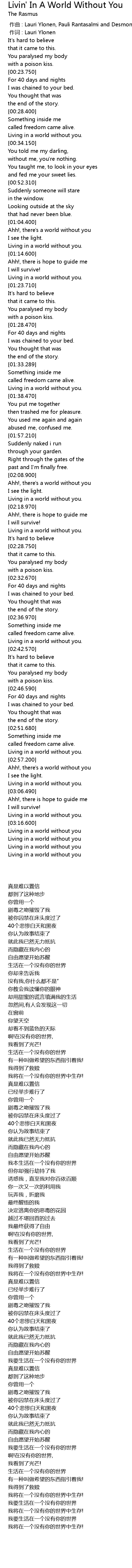 | [03:23.920] | 我将在一个没有你的世界中生存! |