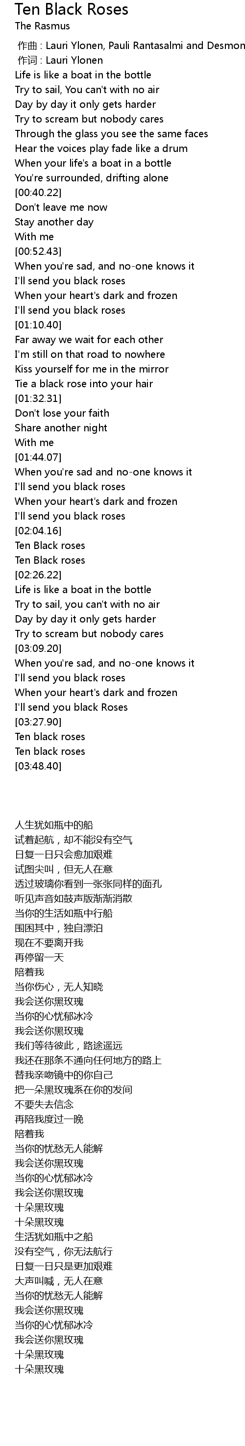 | [03:39.35] | Ten black roses |
