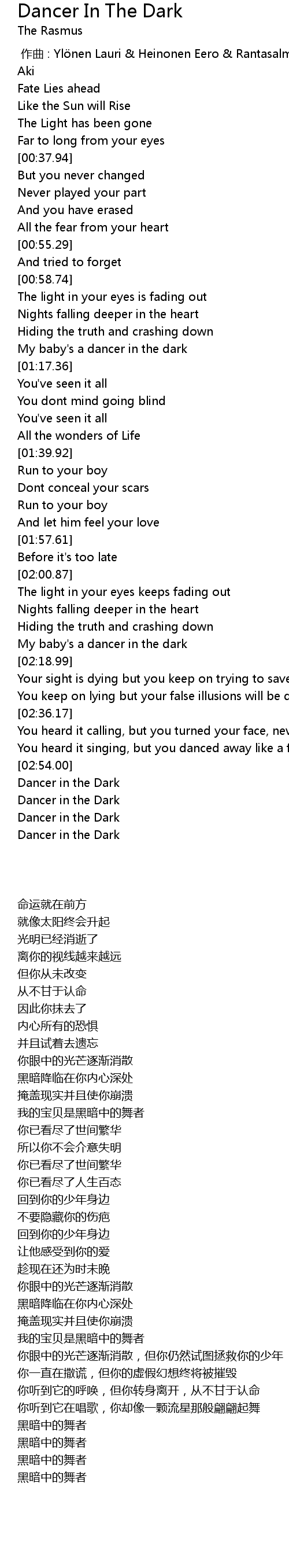 | [02:54.90] | Dancer in the Dark |
