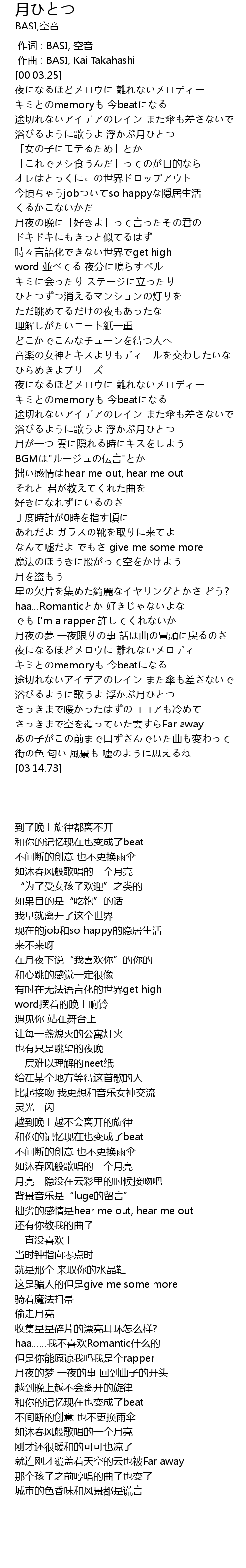 | [00:00.00] | 作词 : BASI, 空音 |