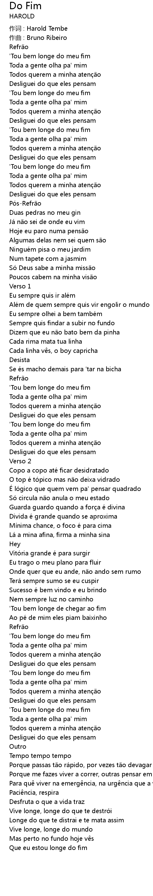 | ' Tou bem longe do meu fim | |