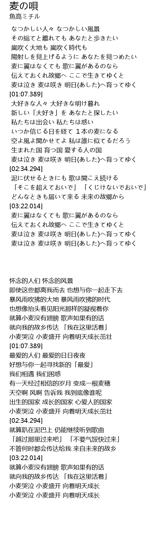 | [03:31.458] | 麦に翼はなくても 歌に翼があるのなら |