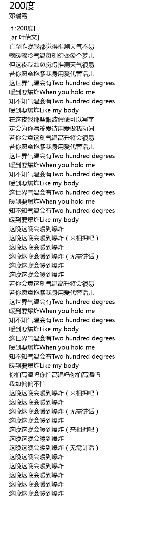 | [01:59.381] | 这世界气温会有Two hundred degrees |