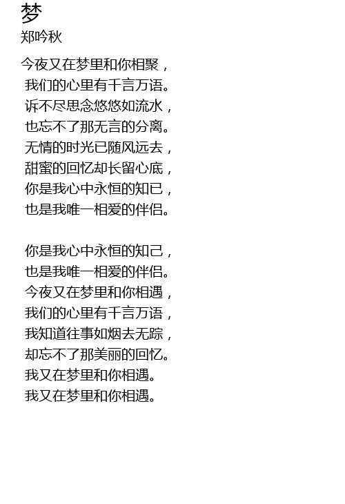 | jīn yè yòu zài mèng lǐ hé nǐ xiāng yù, | |