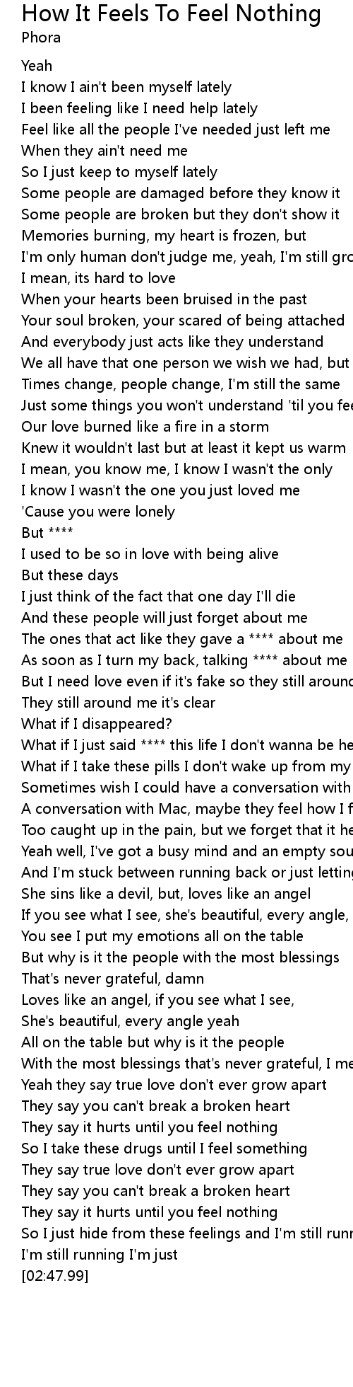 They say it hurts until you feel nothing |