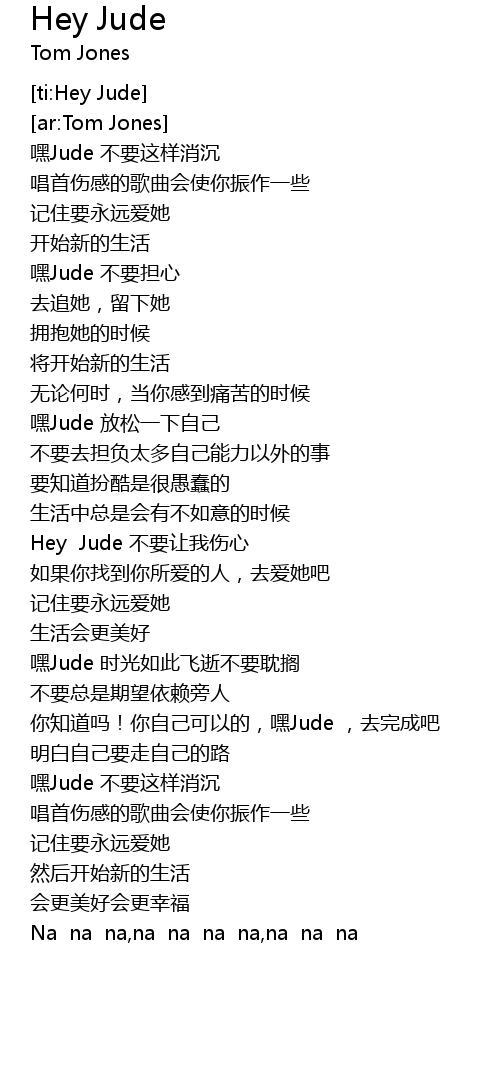| [01:29.385] | Hey Jude 不要让我伤心 |