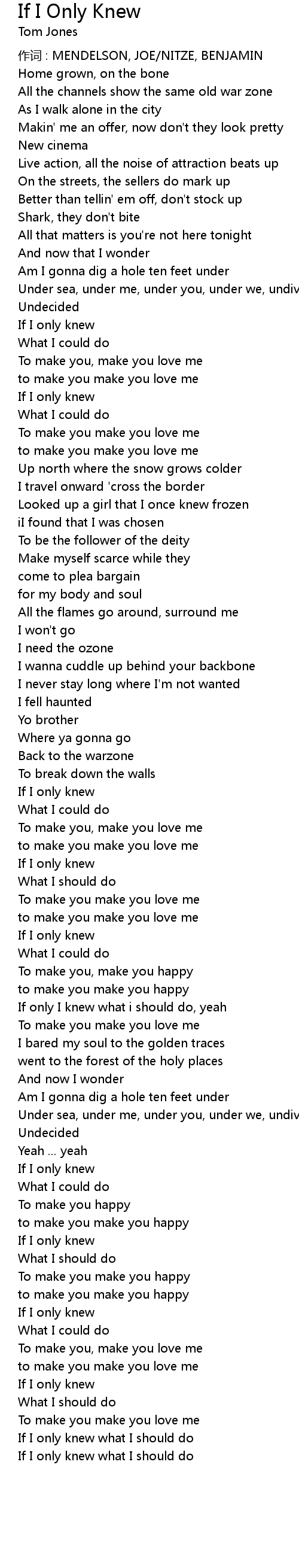 | 歌曲 | If I Only Knew |