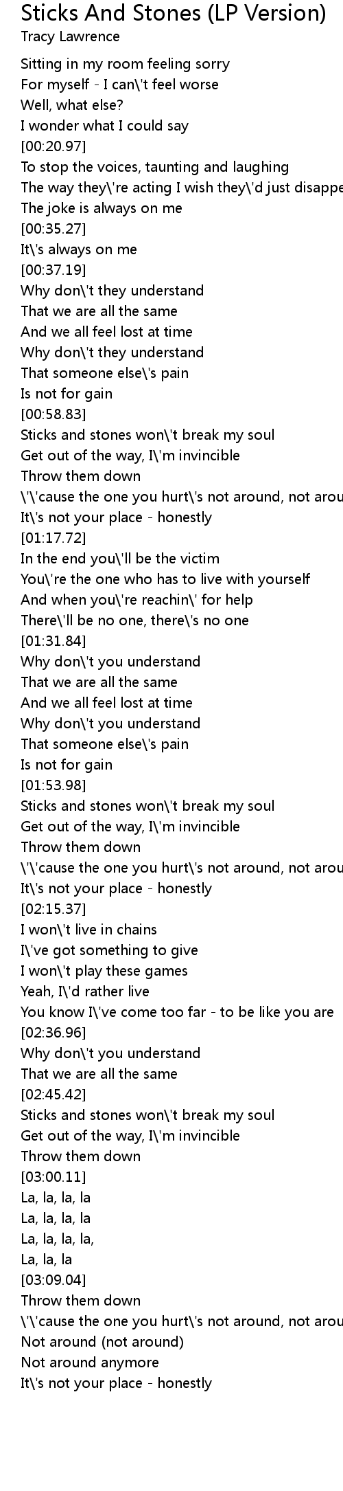 Sticks and stones won\'t break my soul |