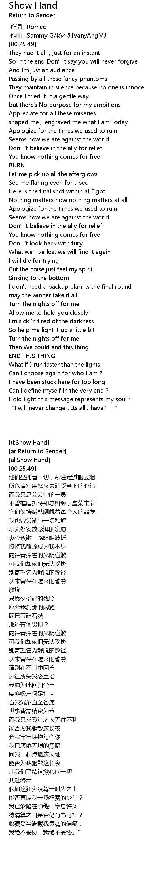 | [00:53.99] | They maintain in silence because no one is innocent |