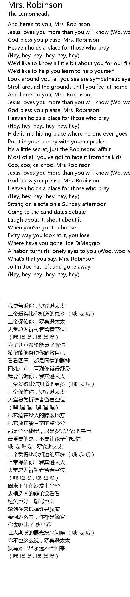 Coo, coo, ca-choo, Mrs Robinson |
