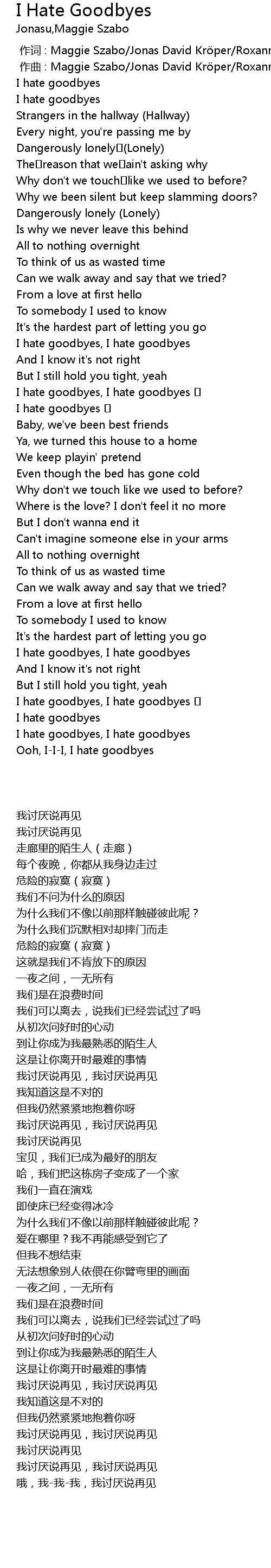 | [00:44.83] | 我讨厌说再见,我讨厌说再见 |