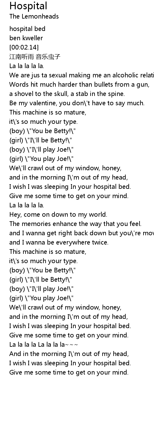 | [02:38.29] | I wish I was sleeping In your hospital bed. |