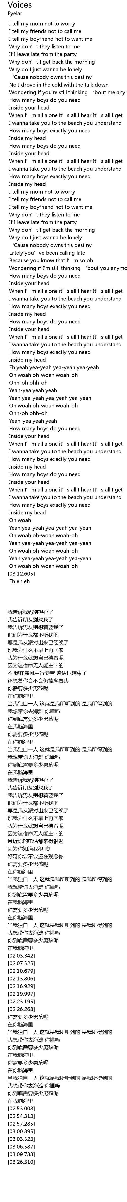 | [02:00.057] | 你到底需要多少男孩呢 |