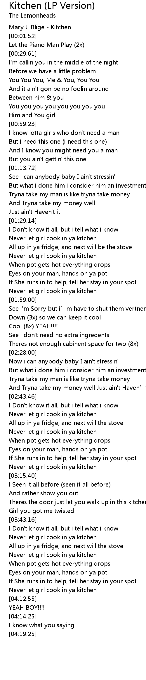 | [03:54.07] | Never let girl cook in ya kitchen |