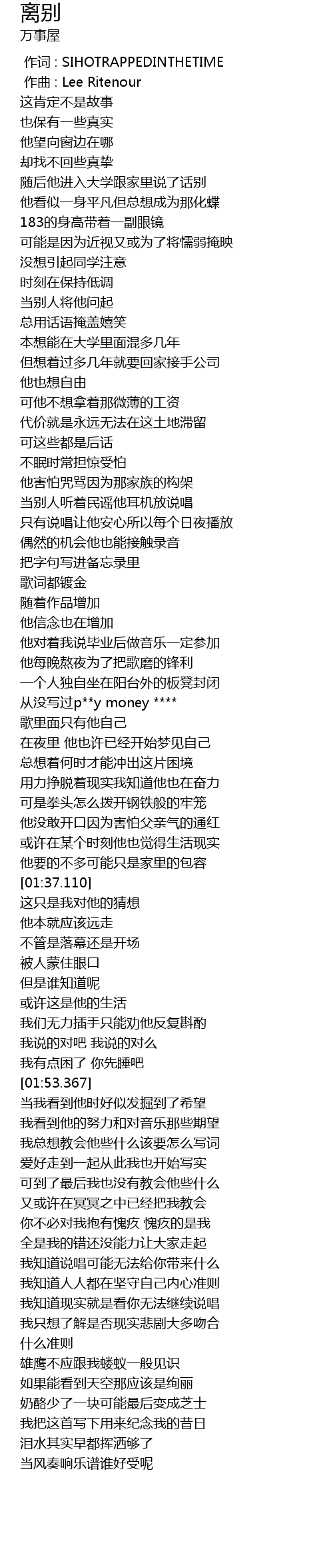 | [00:00.000] | 作词 : SIHOTRAPPEDINTHETIME |