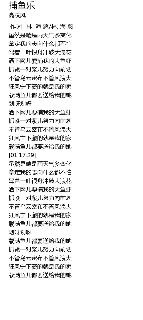 [01:41.01] 洒下网儿要捕我的大鱼虾