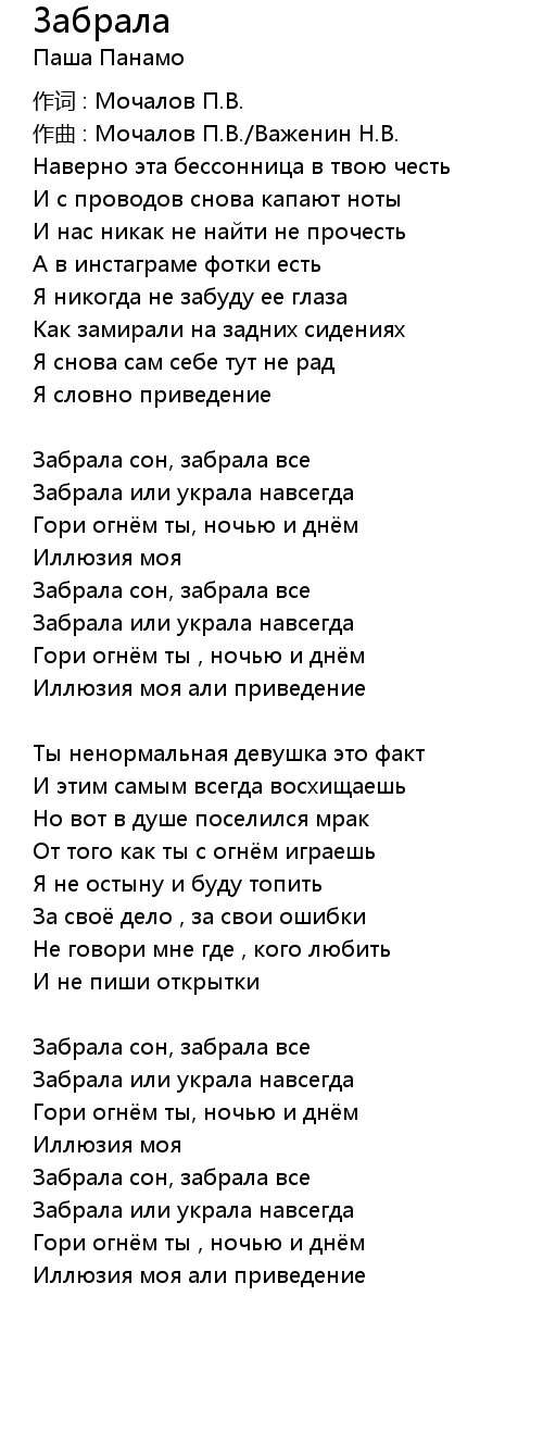 Забрала сон, забрала все |