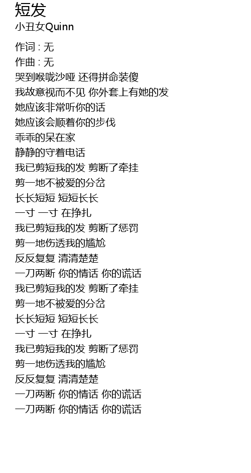 | wǒ yǐ jiǎn duǎn wǒ de fā jiǎn duàn le qiān guà | |
